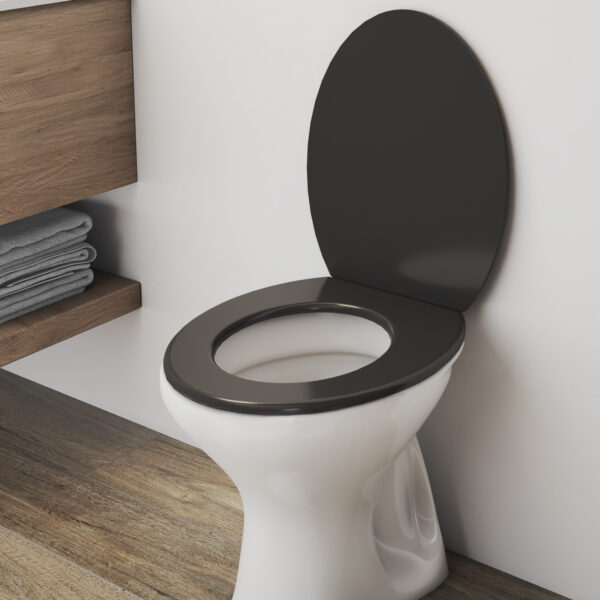 Wc-sitz aus universal und befestigungen aus polypropylen. hergestellt aus recyceltem material aus italienischer nachhaltiger kette. 100 % recycelbares produkt