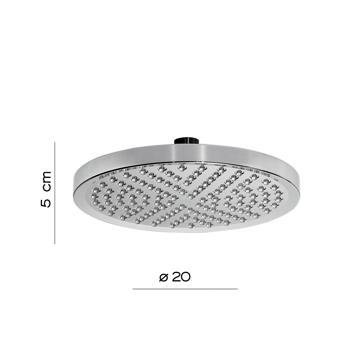 Duschkopf 1 strahl, ø 20 cm, 1/2 verbindung. plus produkt: das vorhandensein von mikrofonen, die einen nebel-effekt, universelle befestigung, antischfilter und eine wassereinsparung von 50% haben.