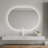 Oval polished edge mirror with led lights. product plus: mirror lead free, eco-friendly and reversible glass. this kind of led is perfect for high precision works as make up and shaving. led lighting is ip44, ii classe, rohs, class exempt group en 62471, 20w – 5700°k – cri>85 – 220-240v – 50-60hz – 880 lumen. this mirror is made in spain.