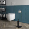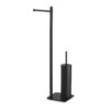 Bathroom butler with toilet paper roll holder and toilet brush holder. toilet brush with black bristle brush and removable inner cup suitable for easy cleaning