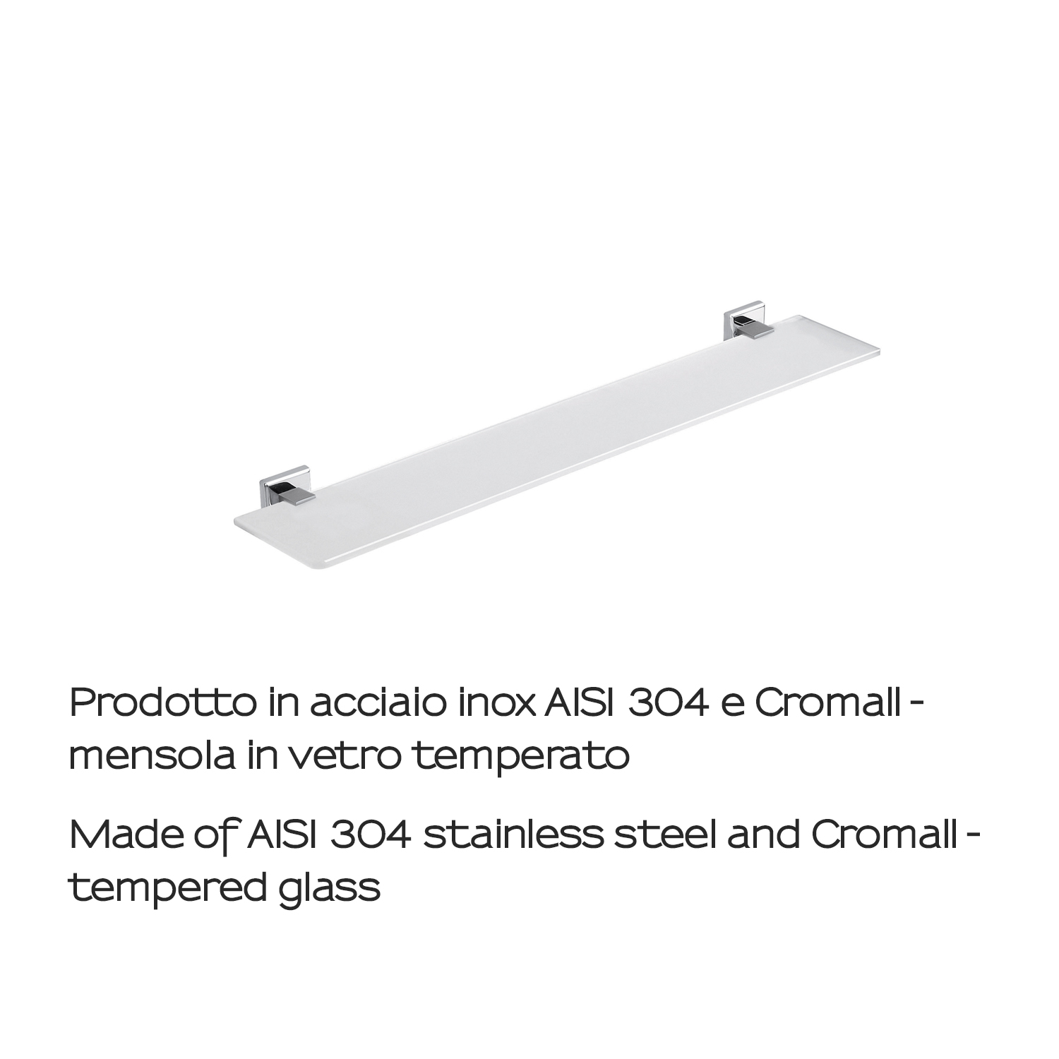 Shelf in tempered glass of 60 cm, load tested 6,5 kg