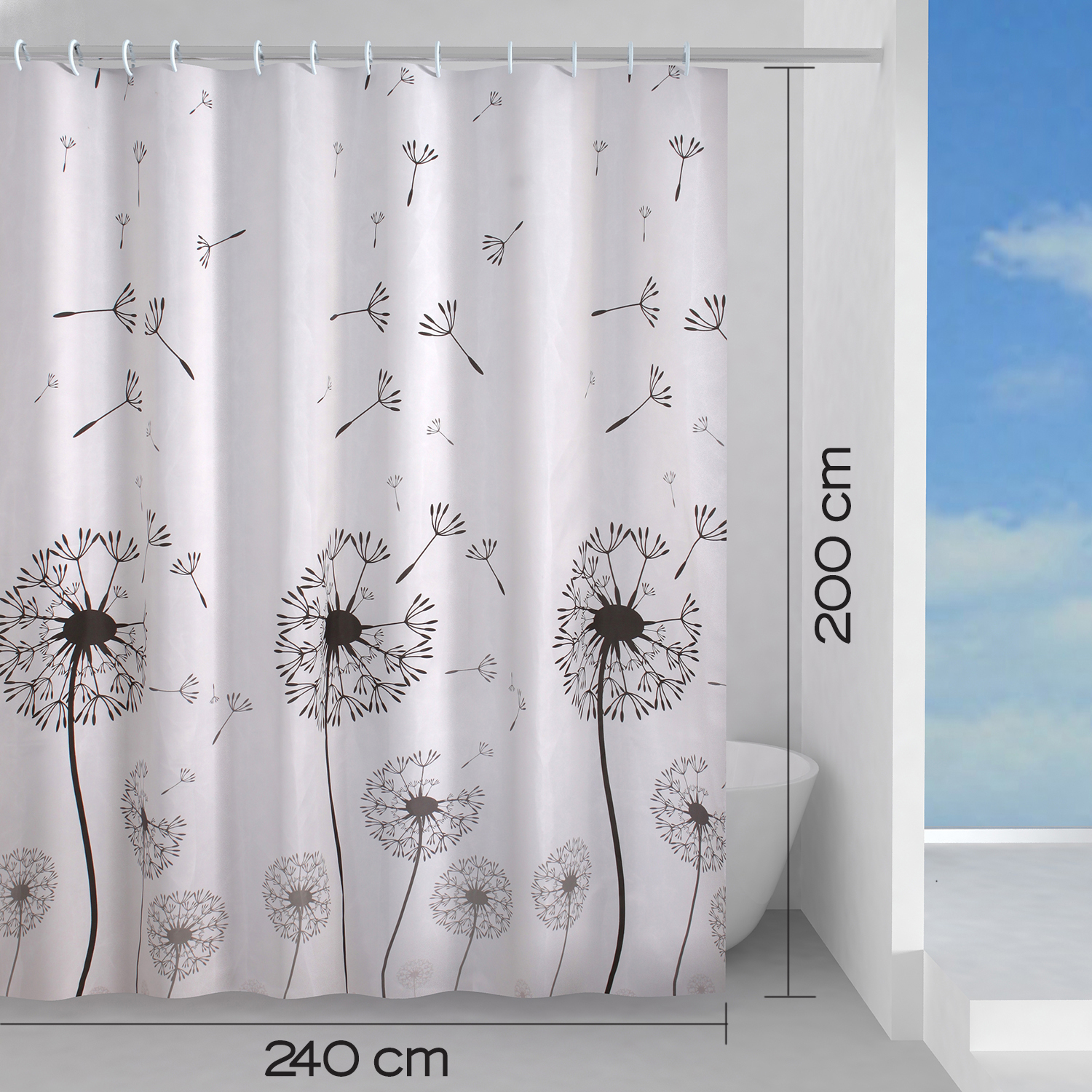 Shower curtain with rings 240×200 cm
