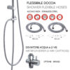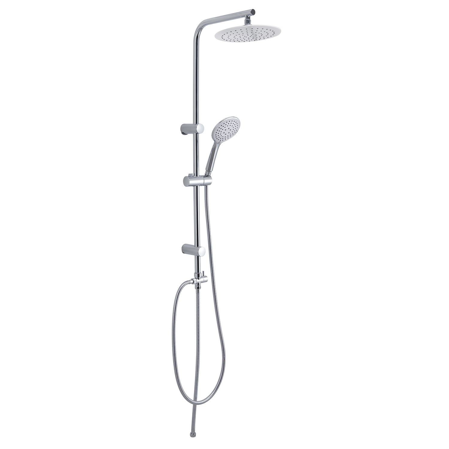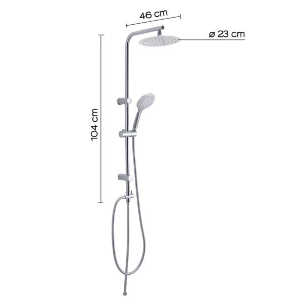 Adjustable shower column 100 cm, 1 jet shower head ø 23 cm, 3 jets hand shower, double lock in stainless steel flexible hose 150 cm 1/2×1/2 with conical anti-twist system, double lock in stainless steel flexible hose 60 cm 1/2×1/2, 2 way cartridge water diverter. plus product: presence of micro-holes that creates a nebulous effect, universal connection, antisabbia filter and has a water saving reduction of 50%. nozzles with easy cleaning system. the hose is tear-resistant, resistant to bending and resistant to a temperature of 90°