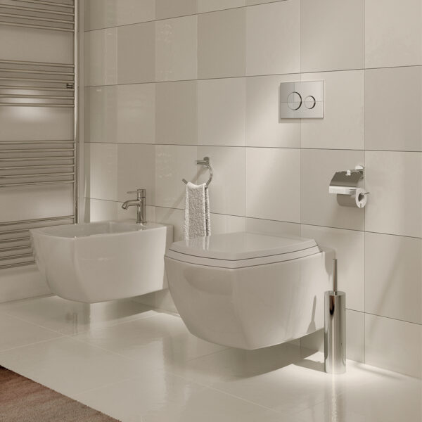 Toilet brush holder with black bristle brush and removable internal cup suitable for easy cleaning