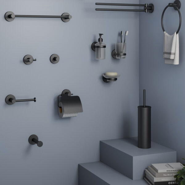 Toilet brush with black bristle brush and removable internal cup suitable for easy cleaning