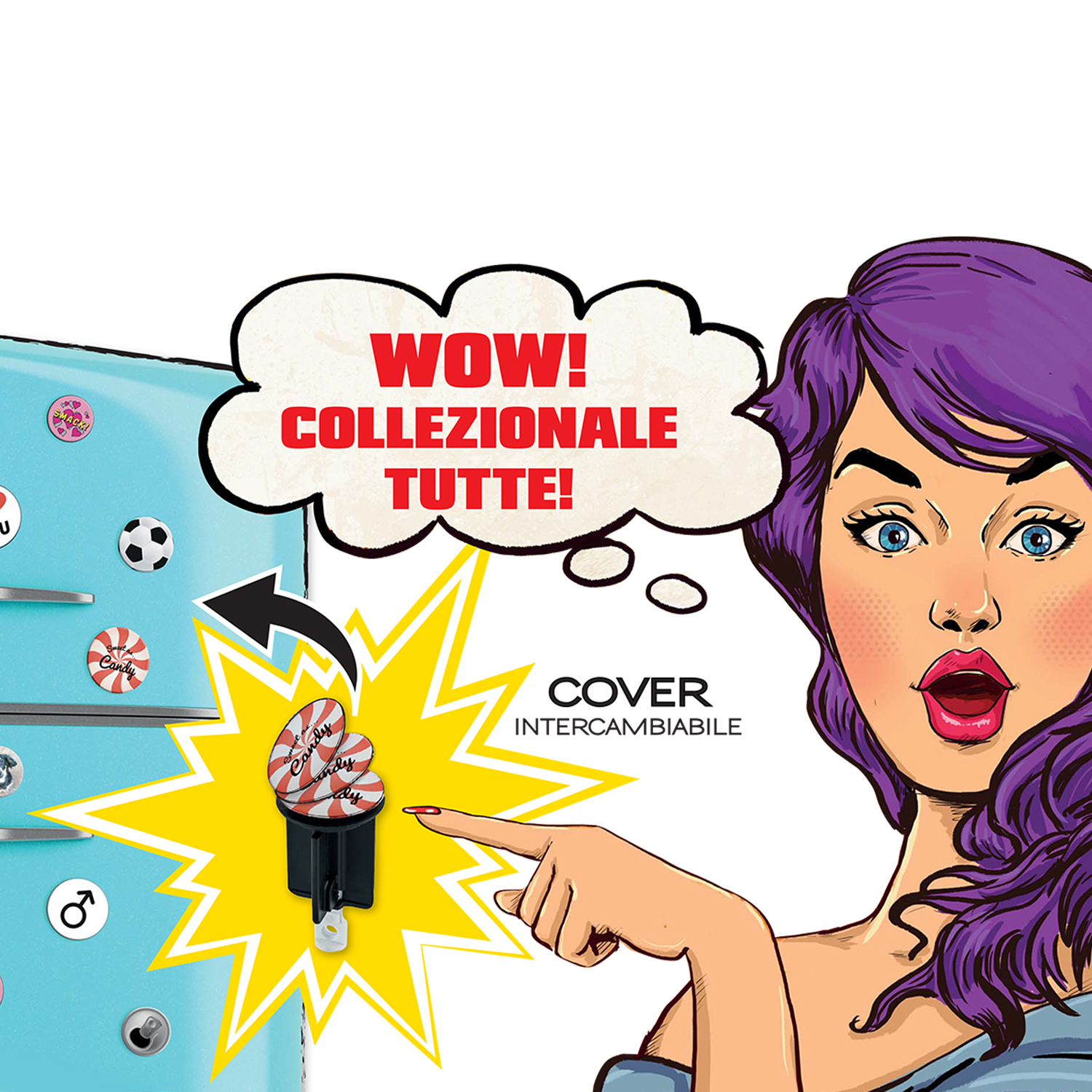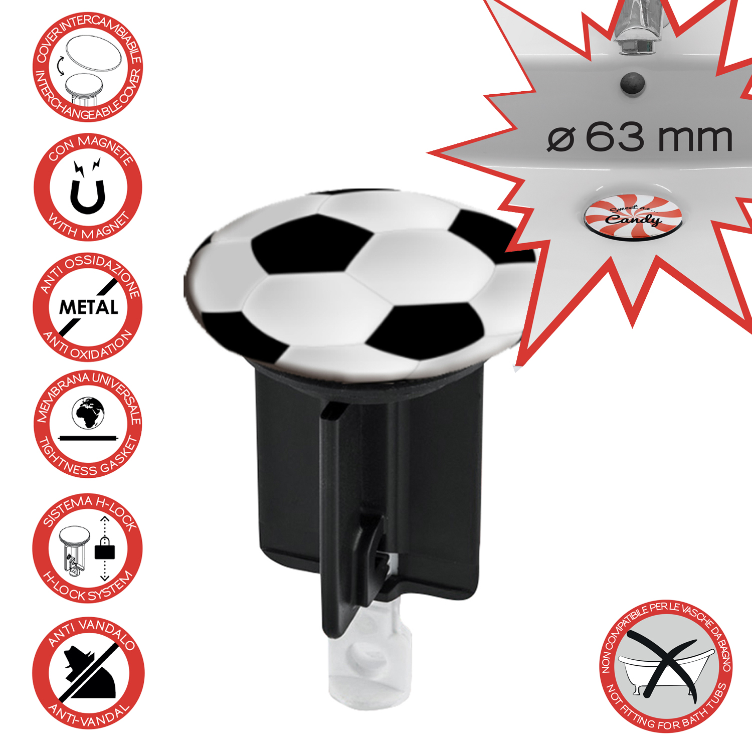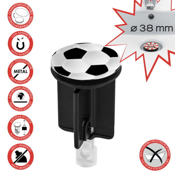 Universal washbasin/bidet plug with interchangeable magnetic covers – assorted covers ø 38/ø 6,3 cm