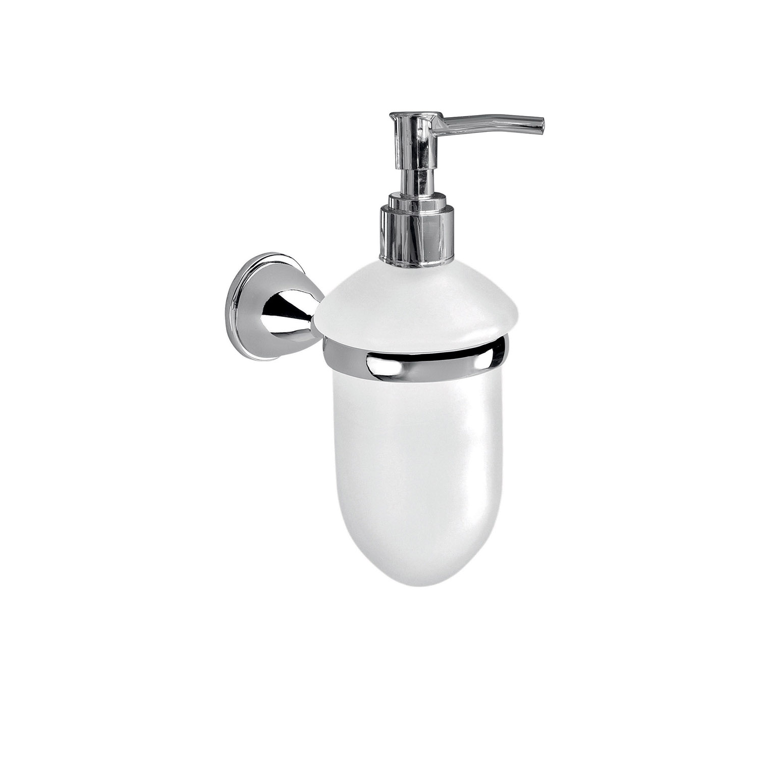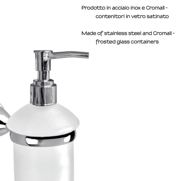 Soap dispenser with frosted glass containers and plastic dispenser pump
