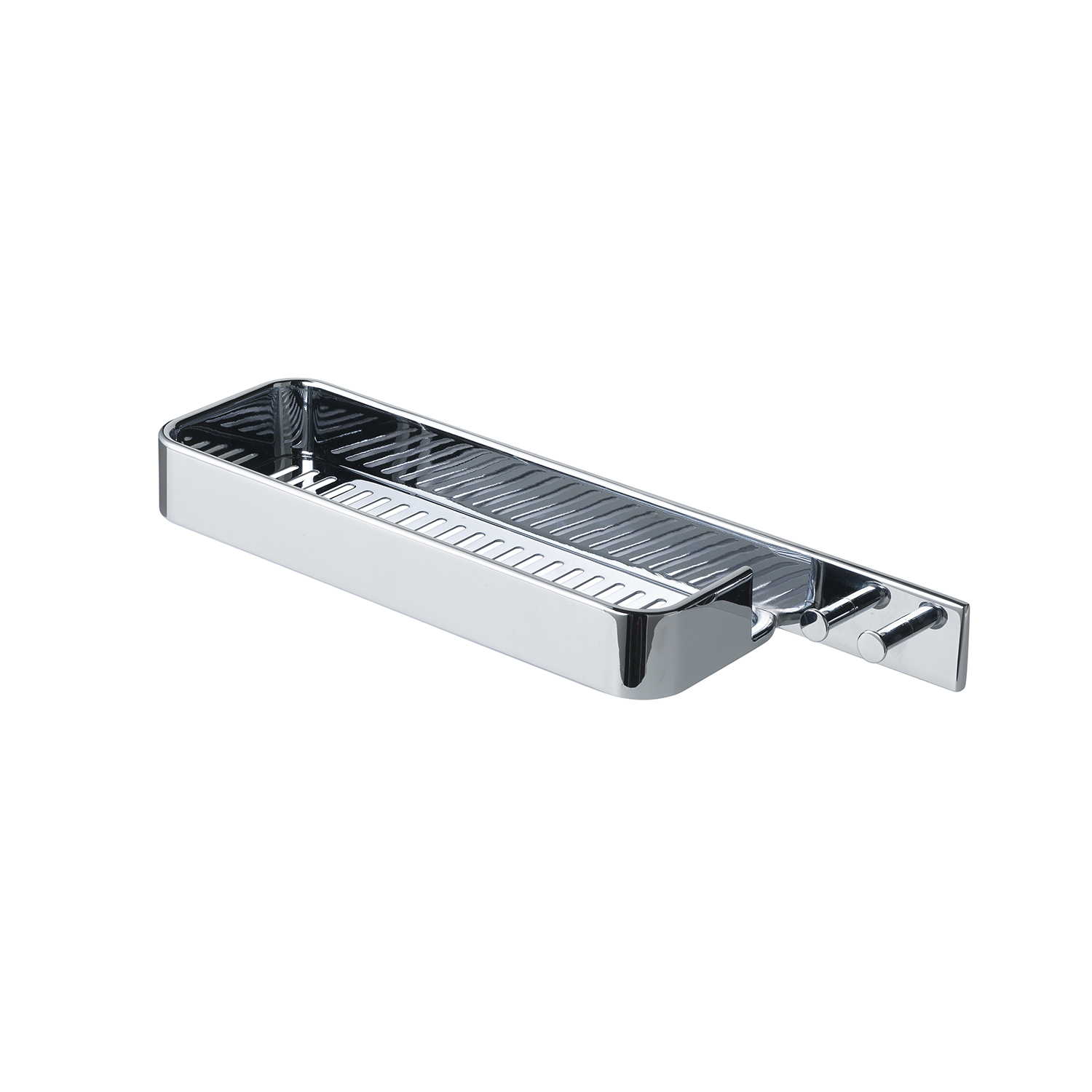 Rectangular shower holder with hooks in aisi 304 stainless steel