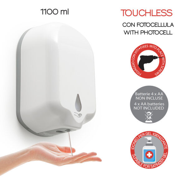 Touchless soap dispenser suitable for sanitizing gel capacity 1,1 lt