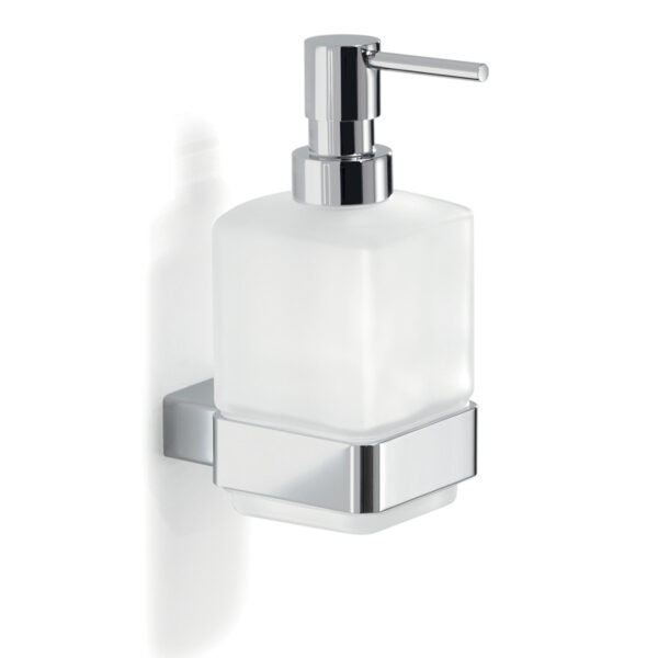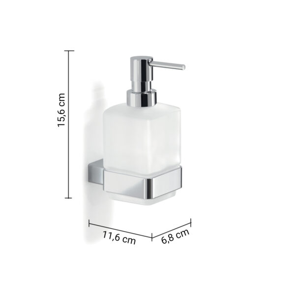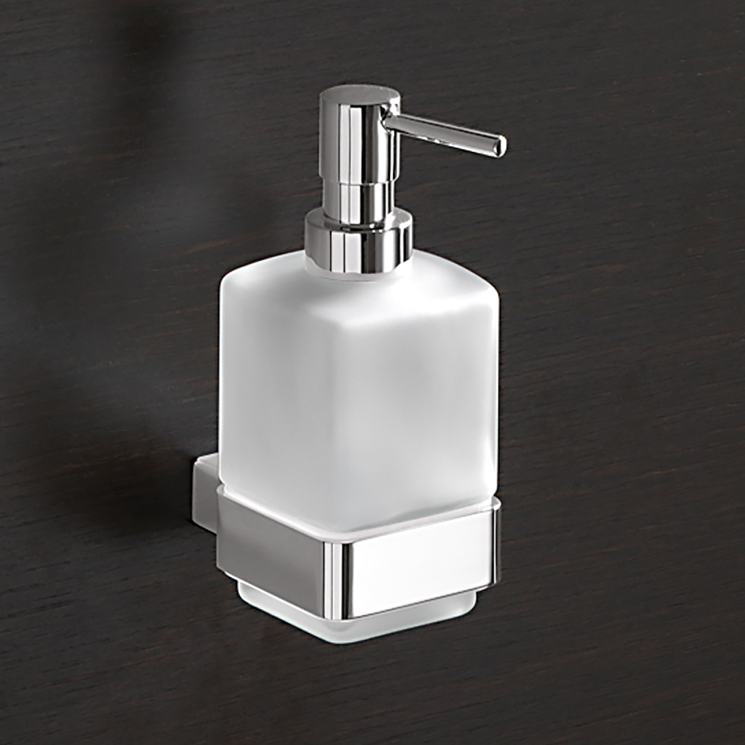 Soap dispenser with frosted glass containers and brass dispenser pump
