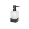 Soap dispenser with frosted glass containers and brass dispenser pump