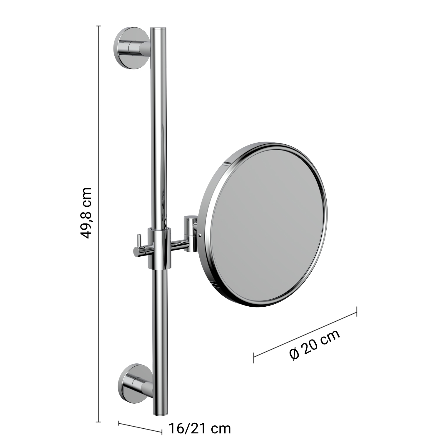 Sliding wall mounted magnifying mirror. magnifying factor 3x