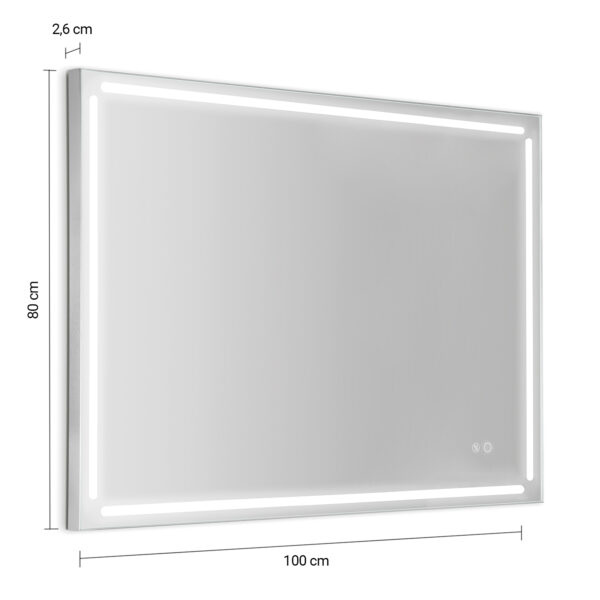 Led mirror. product plus: digital touch, mirror lead free, eco-friendly and reversible glass. this kind of led is perfect for high precision works as make up and shaving. led lighting is ip44, ii classe, rohs, class exempt group en 62471, 40w – 5700k – cri>91 – 220-240v – 50-60hz – 850 lumen. this mirror is made in spain.