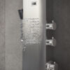 Multifunctions shower panel 167x19x18 cm, 1 shower head jet, 1 waterfall jet, 3 massage jets, 1 jet hand shower, thermostatic mixer, 2 x 2-way water on-off mixer-diverter, double lock in stainless steel flexible hose 150 cm 1/2×1/2 with conical anti-twist system plus product: presence of micro-holes that creates a nebulous effect, universal connection, antisabbia filter and has a water saving reduction of 50%. nozzles with easy cleaning system. the hose is tear-resistant, resistant to bending and resistant to a temperature of 90°