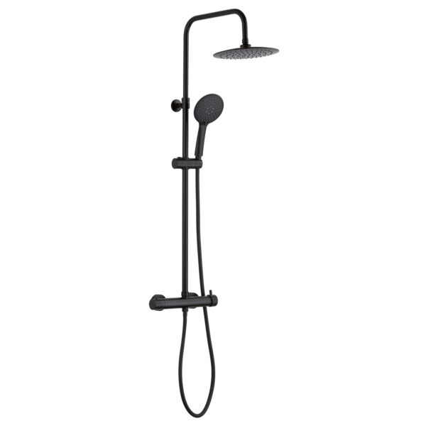 Extensible shower column 84-144 cm, hand mixer, 1 jet shower head ø 22,5 cm, 3 jets hand shower, flexible hose 150 cm 1/2×1/2 with conical anti-twist system plus product: presence of micro-holes that creates a nebulous effect, universal connection, antisabbia filter and has a water saving reduction of 50%. nozzles with easy cleaning system. the hose is tear-resistant, resistant to bending and resistant to a temperature of 90°