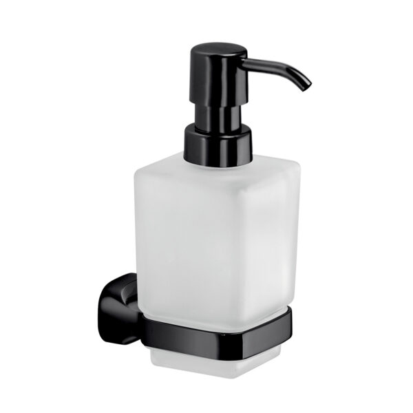 Soap dispenser with frosted glass containers and plastic dispenser pump