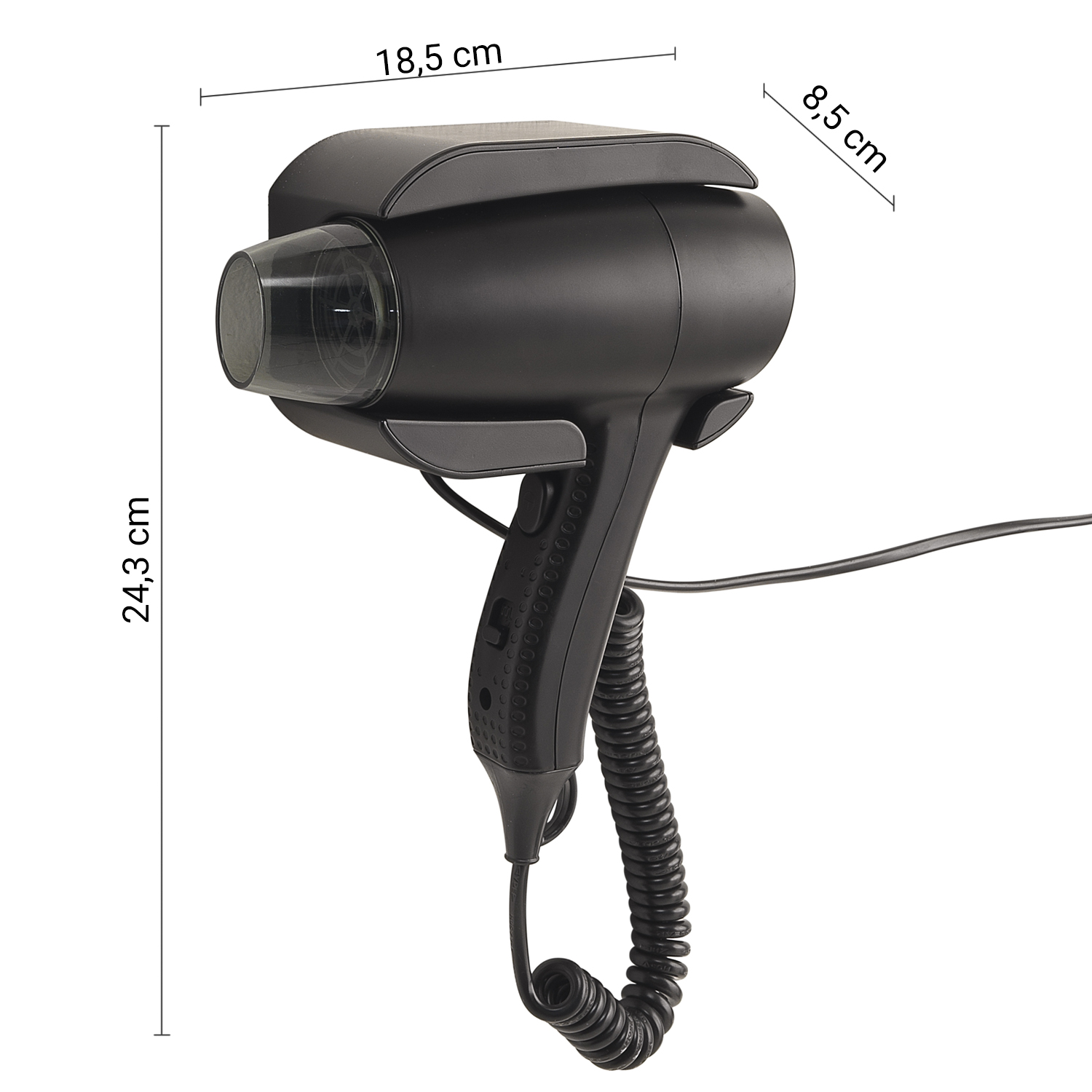 Hair dryer with wall mount with power 1200 w. air speed 40 km/h. classe ii – ipx4 – 220-240 v – 50-60 hz