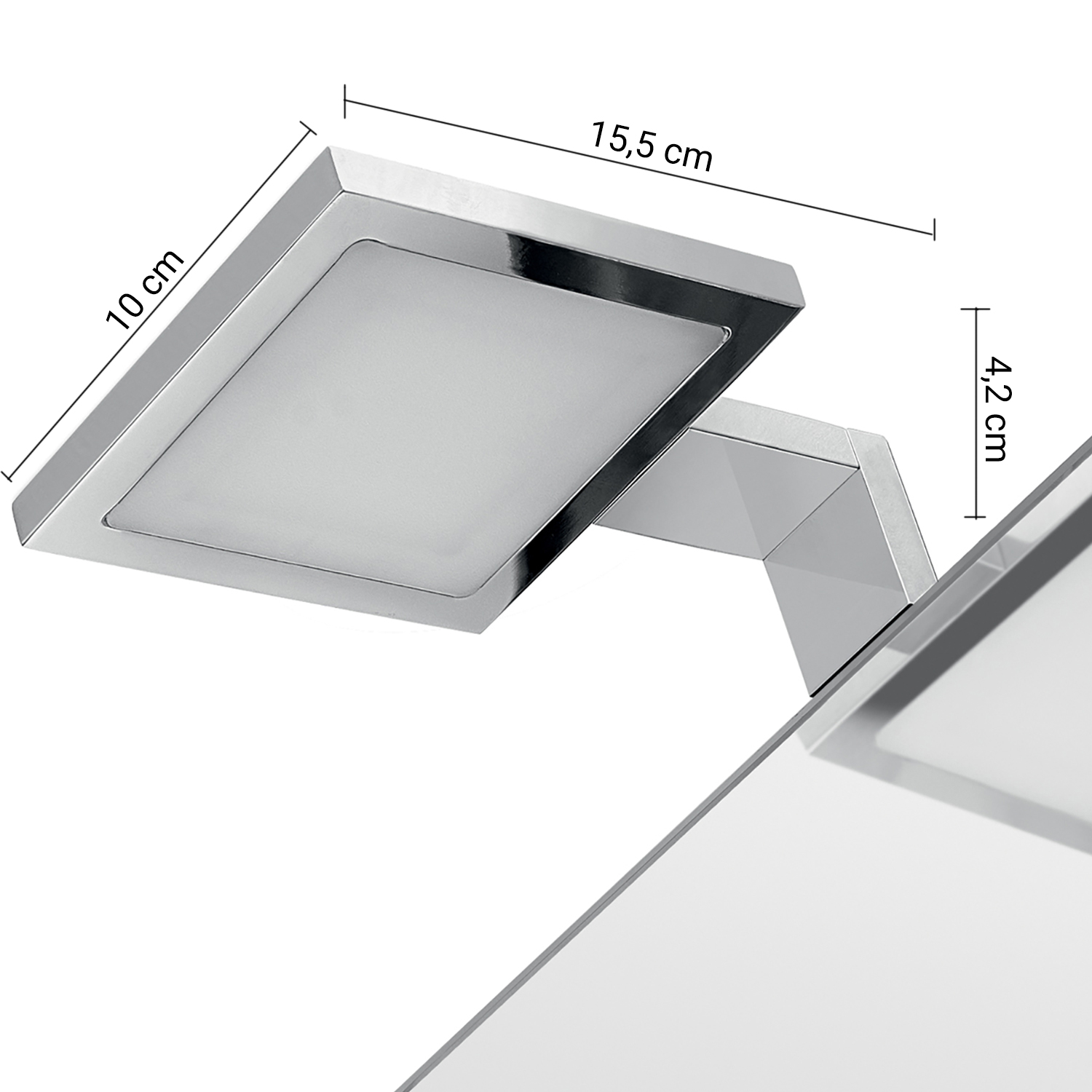 Lámpara de led con bastidor de fijación predispuesto para espejos con marco. led ip44, class exempt group en 62471, 4,4w – 3000°k – cri>80 – 230v – 50hz – 420 lumen