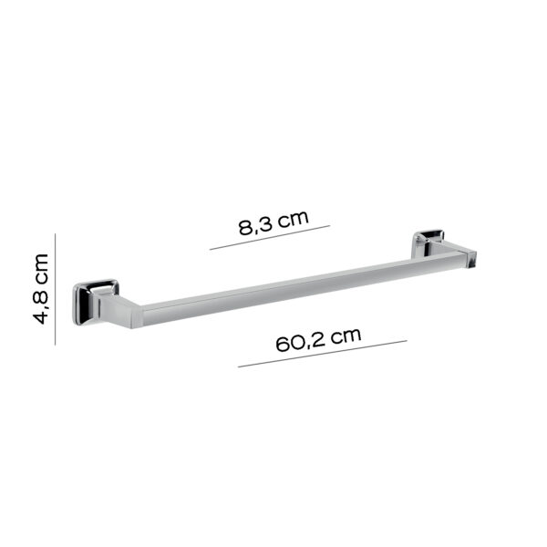 Toallero de 60 cm con posibilidad de cortar la barra para facilitar la sustitución con agujeros ya existentes. carga prueba 7 kg.