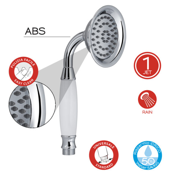 Ducha de mano 1 chorro rain efecto, as conexione son de tipo universal estándar. plus producto: dotado de filtro anti-arena, eyecoresque permiten una facíl remocion de la cal acumulada y de un filtro que permite reducir hasta el 50% el consumo de agua.