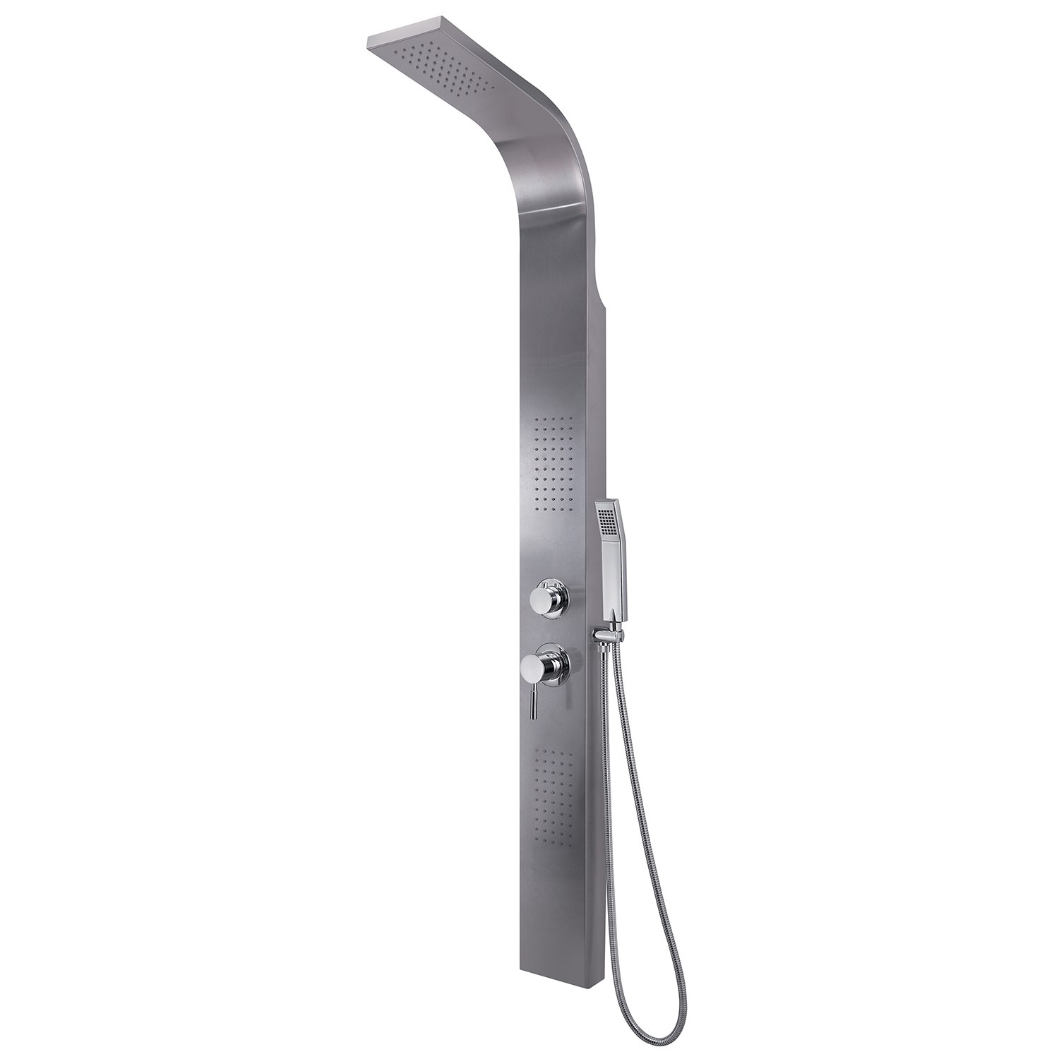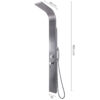 Panel de ducha multifunción 160x15x48 cm, 1 chorro rociador, 2 chorros de masaje, mango de ducha 1 chorro, mezclador manual, desviador de agua de 3 vías, mango de ducha de 1 chorro, flexo de acero inoxidable doble grapado cm 150 1/2×1/2 con sistema cono antitorsión. plus producto: presencia de microagujeros que crea un efecto nebuloso, conexión universal, filtro antisha y tiene una reducción en el ahorro de agua del 50%. boquillas con sistema de limpieza fácil. el flexible es resistente a la torsión, resistente a la flexión y es resistente a una temperatura de 90°