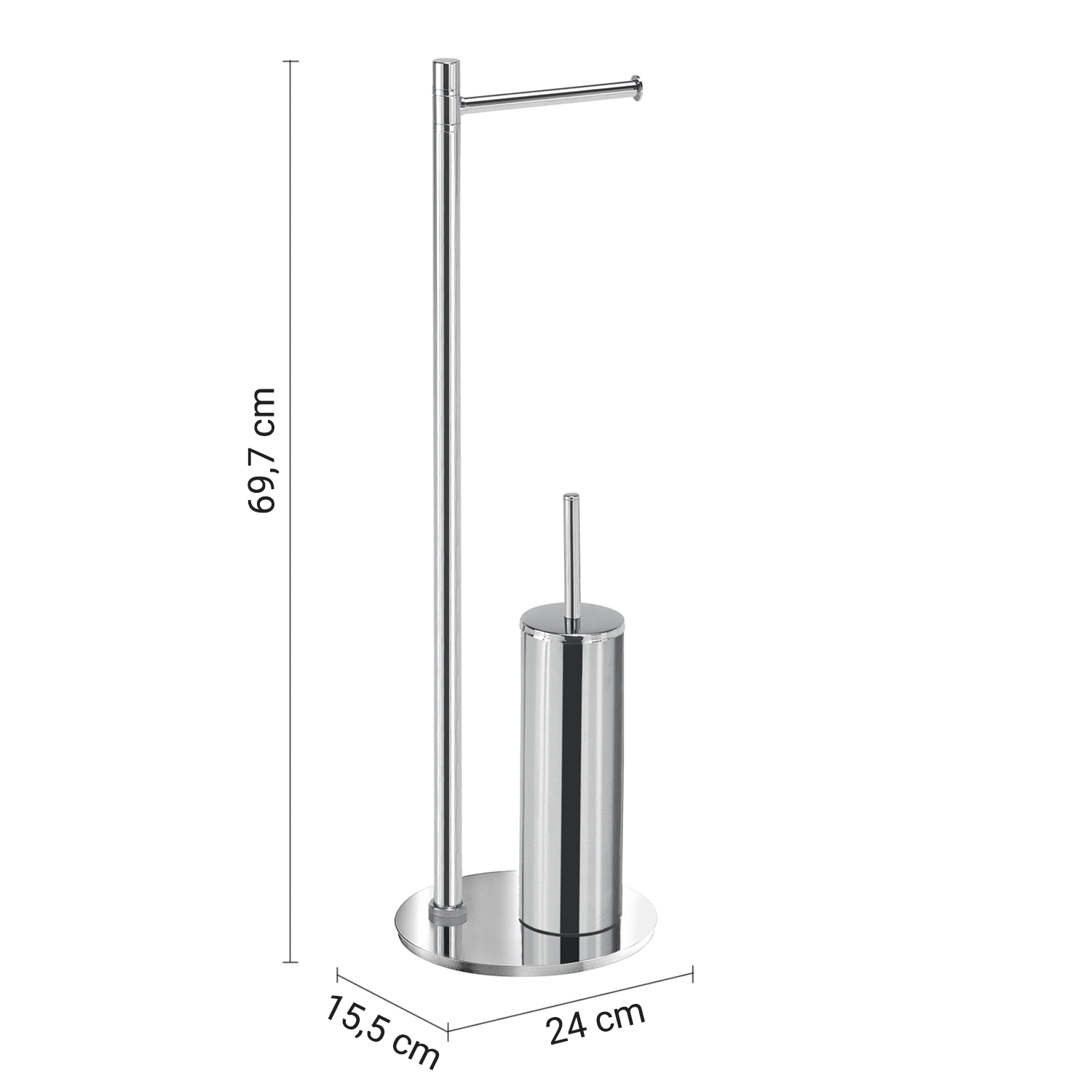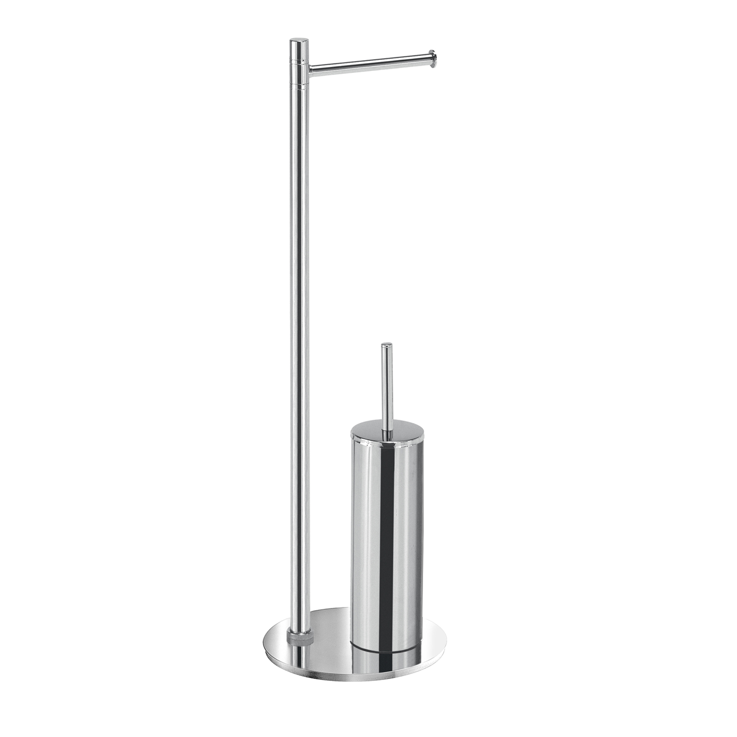 Columna de pie con portarrollos y escobillero y acero inoxidable base. cepillo con puño de cerdas negras y copa interna extraíble apto para fácil limpieza