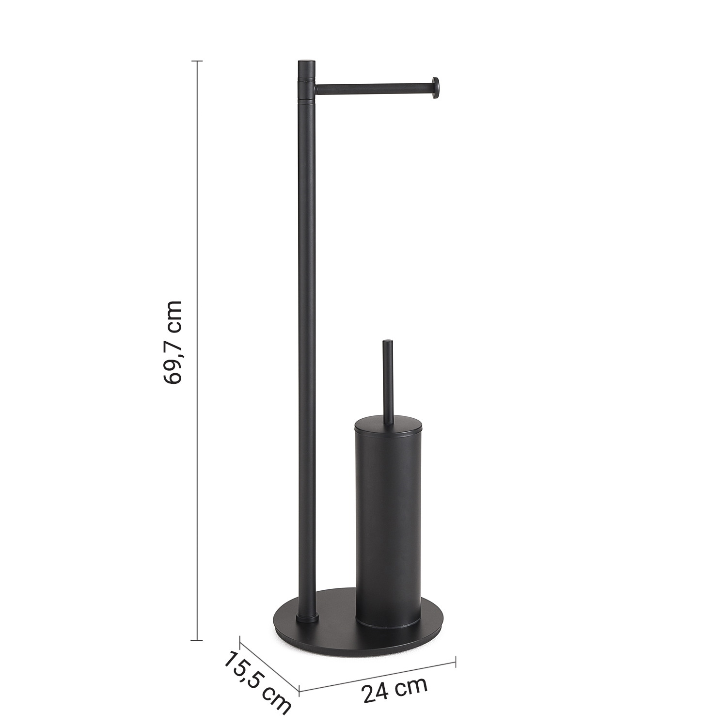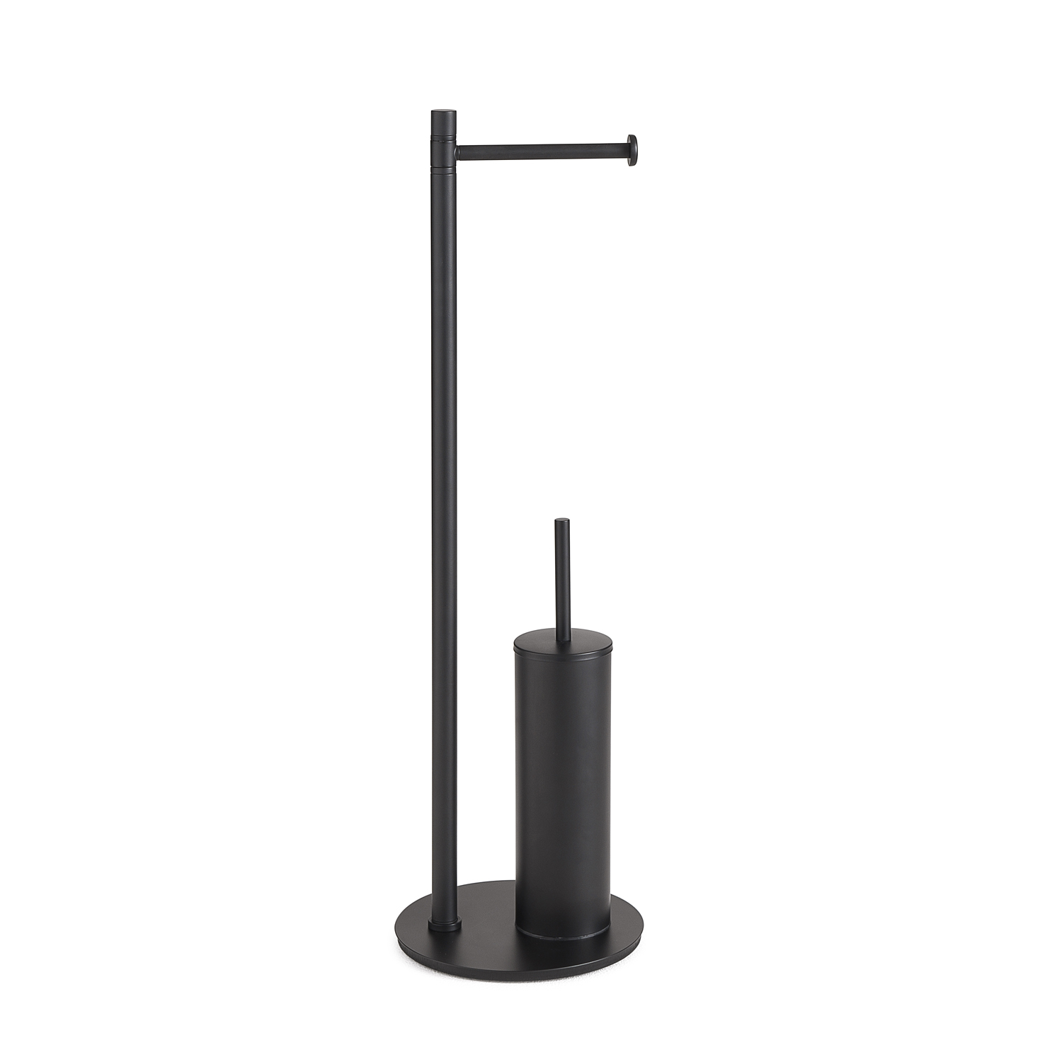 Columna de pie con portarrollos y escobillero y acero inoxidable base. cepillo con puño de cerdas negras y copa interna extraíble apto para fácil limpieza