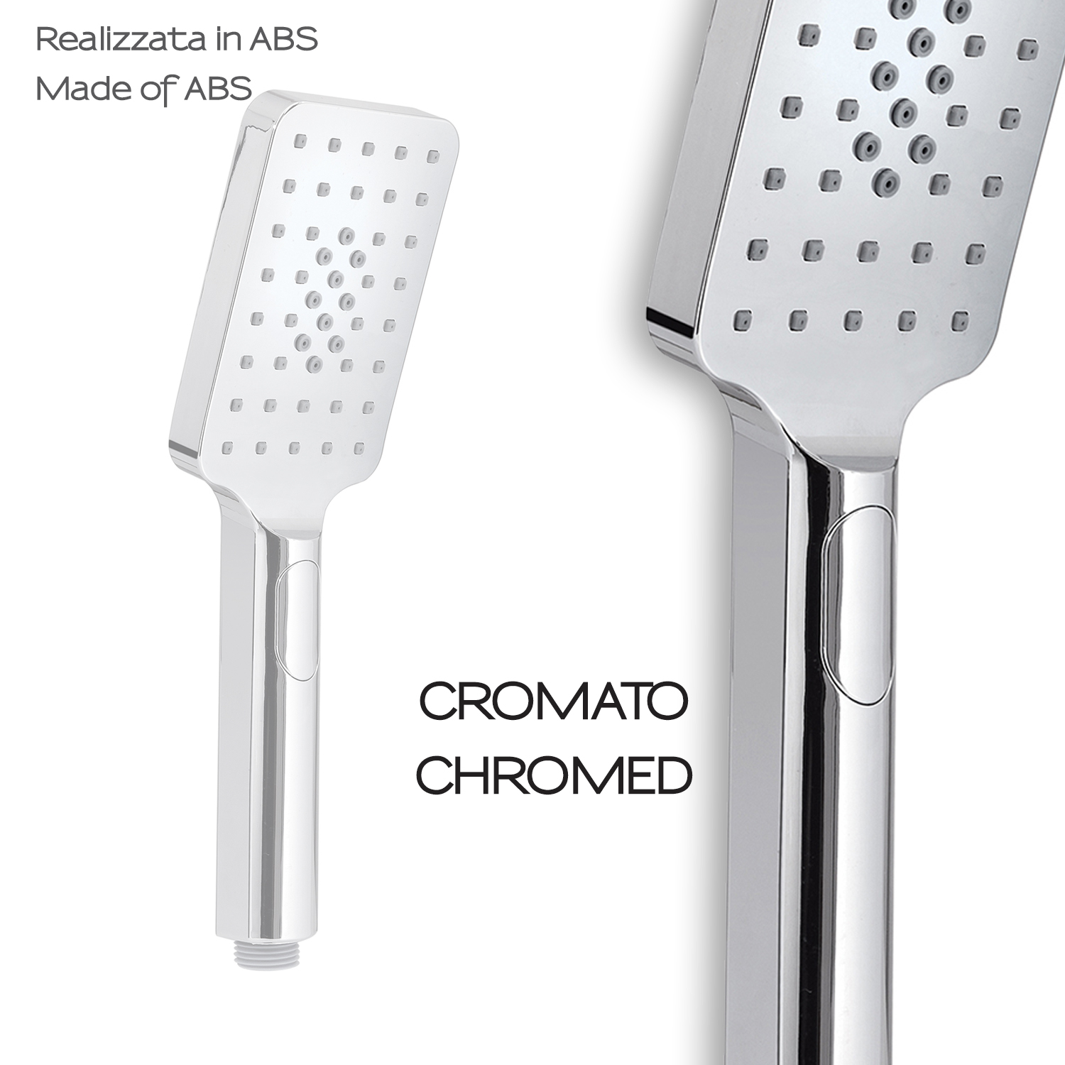 Ducha de mano 3 chorros rain, tonic y massage efecto, las conexione son de tipo universal estándar. plus producto: con cambio de chorros con botó, dotado de filtro anti-arena, eyecoresque permiten una facíl remocion de la cal acumulada y de un filtro que permite reducir hasta el 50% el consumo de agua.