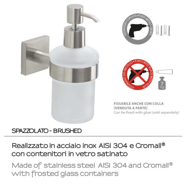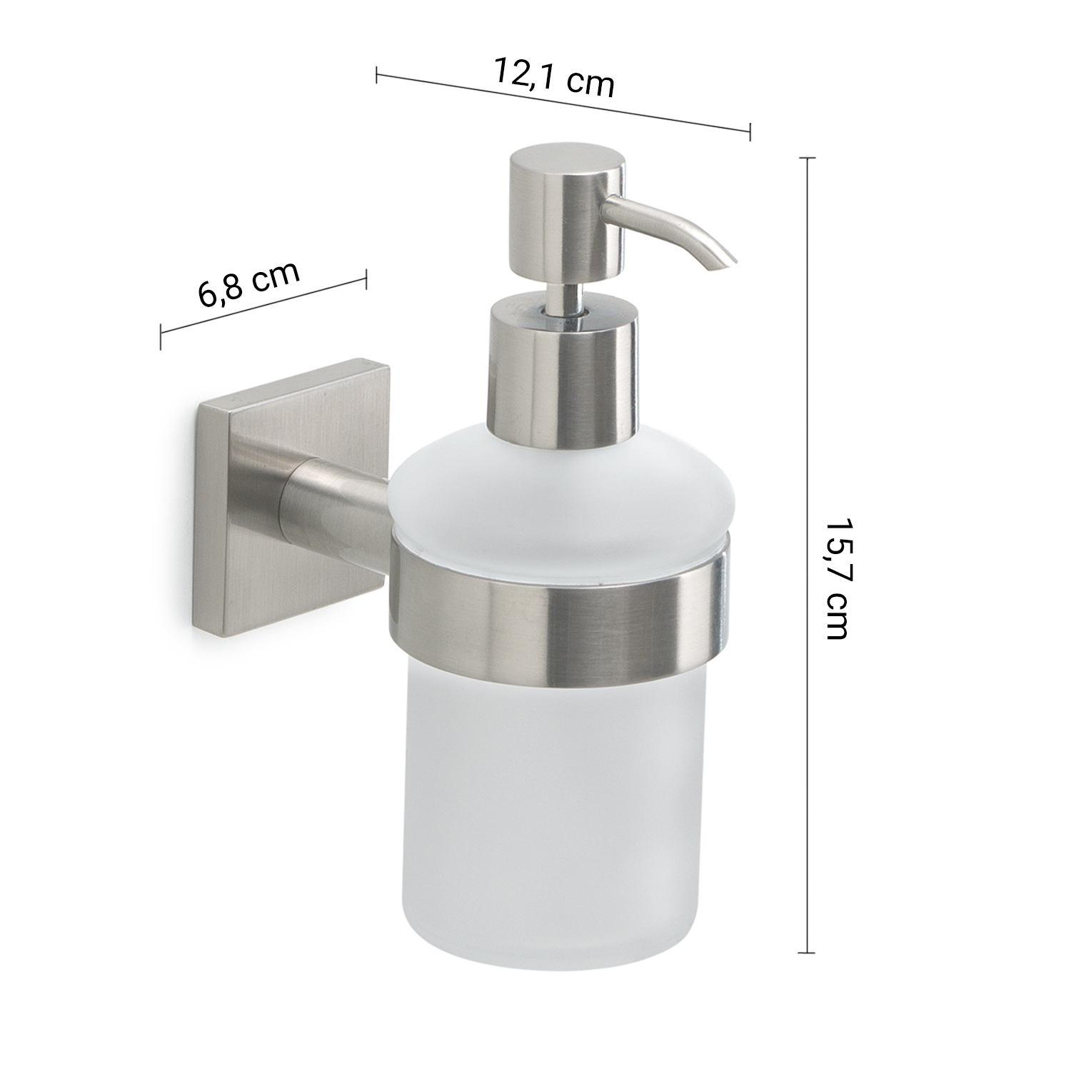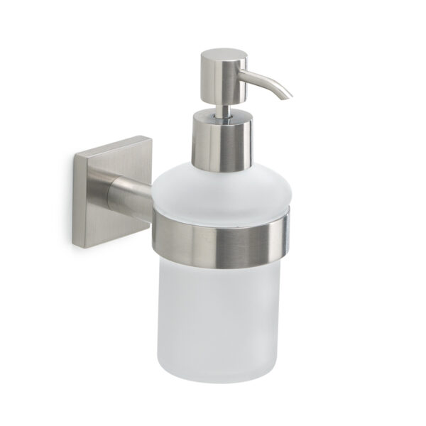 Distributeur de savon avec boitier en verre satine et pompe en cromall®