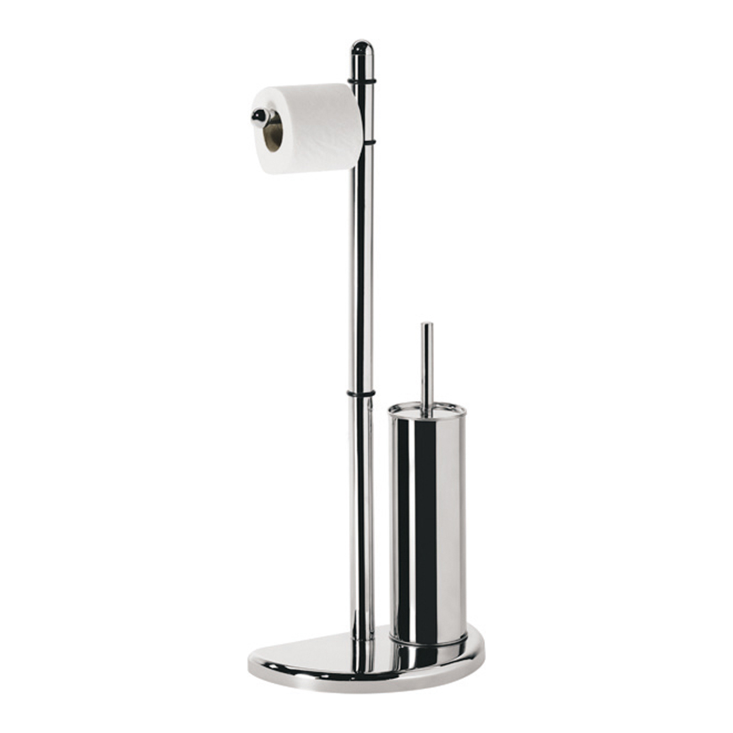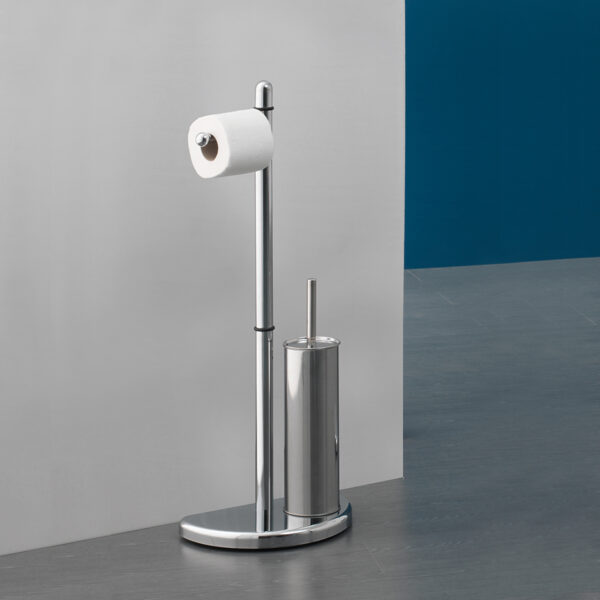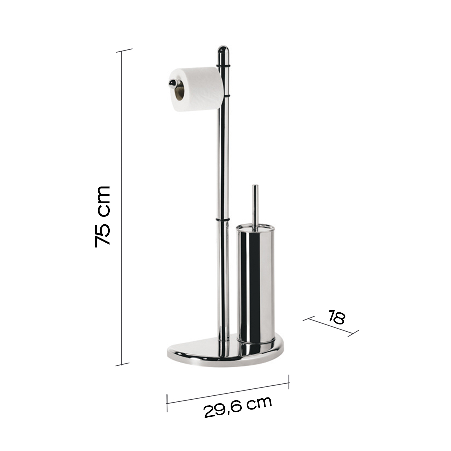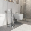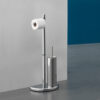 Ensemble porte-papier et porte-brosse wc. brosse avec manchette en poils noir et tasse interne amovible permettant un nettoyage facile