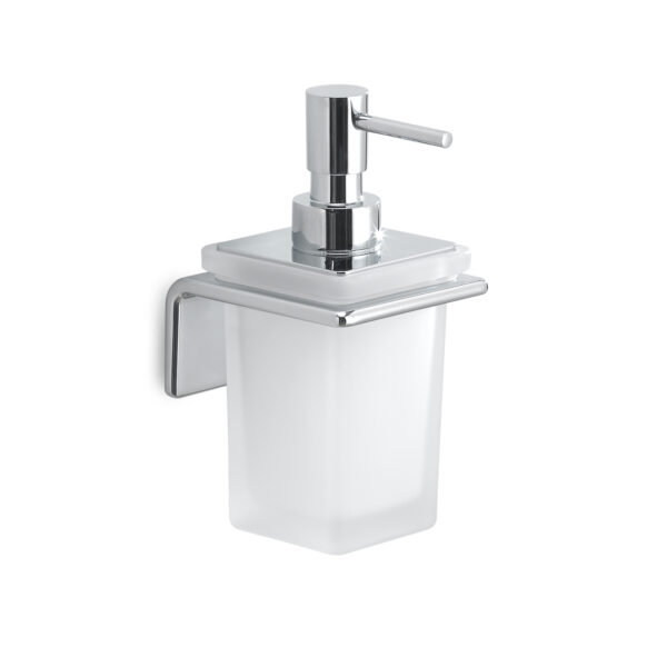 Distributeur de savon avec boitier en verre satine et pompe en cromall®