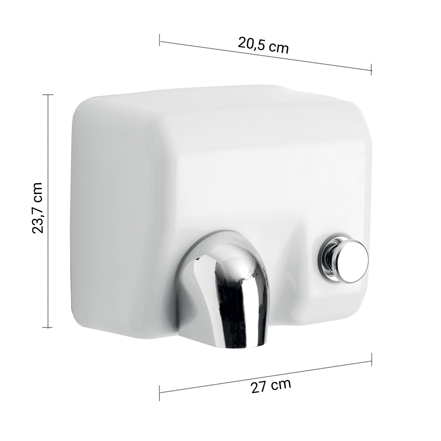 Seche-mains anti-vandalisme a air chaud avec bouton 2300 w, vitesse air 97 km/h classe i- ipx1 – 220-230 v – 50-60hz.