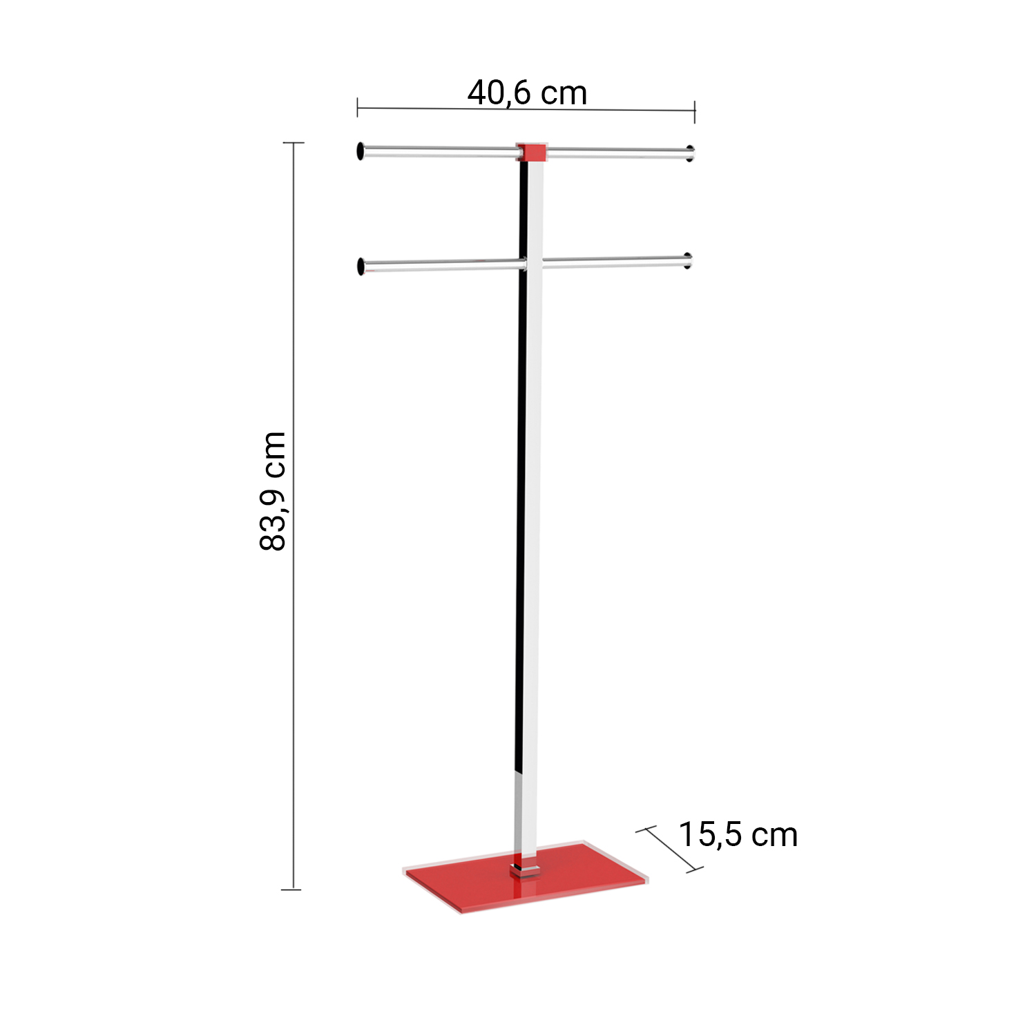 Porte-salviette sur pied avec deux bras et avec base de couleur rouge
