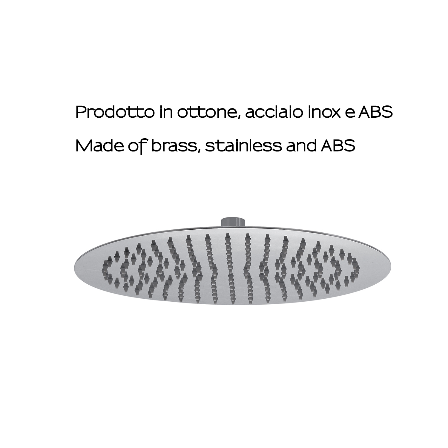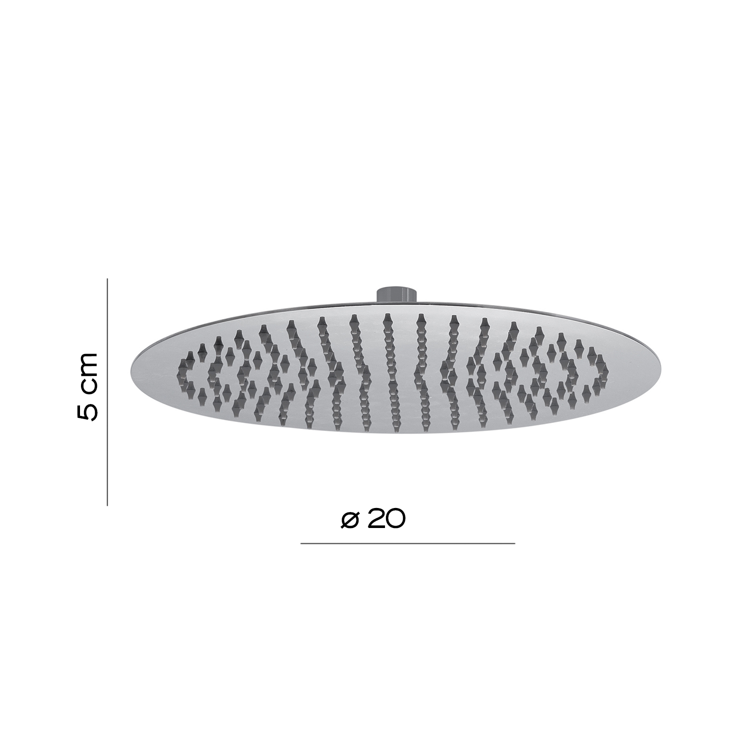 Pommeau de douche 1 jet, ø 20 cm, connection de 1/2. plus produit: presence de micropores qui cree un effet nebuleux, attaque universelle, filtre antisha et reduit les economies d’eau de 50%.