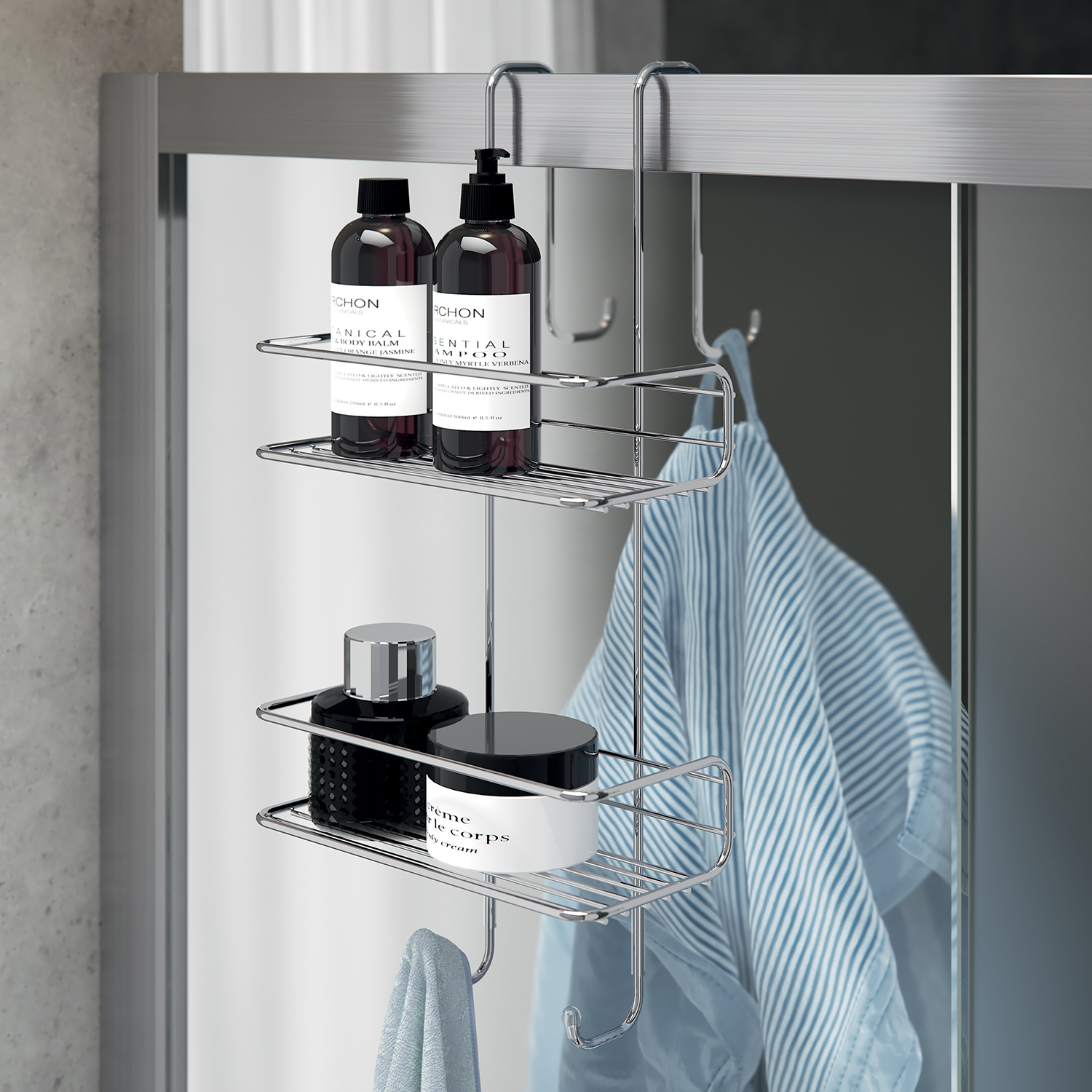 Porte-objets d’angle pour douche fil 2 bacs a suspendre