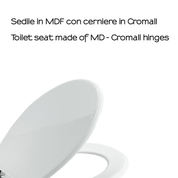 Sedile wc universale in mdf con laccatura epossidica e cerniere in cromall®