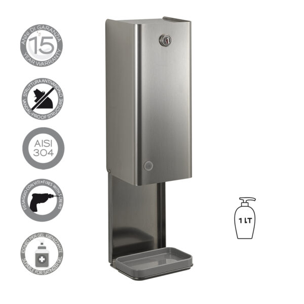 Distributore di sapone o gel igienizzante capacita’ 1 lt con struttura antivandalo e sensore touchless