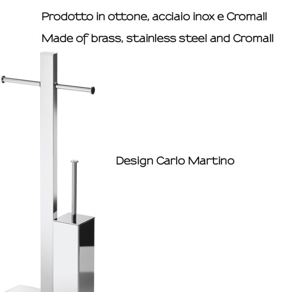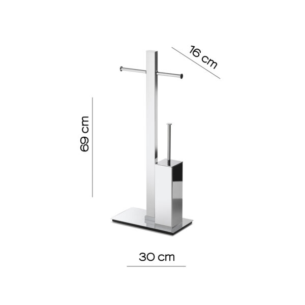 Piantana con portarotolo doppio e scopino con ciuffo in setole bianco e tazza interna estraibile idonea ad una facile pulizia
