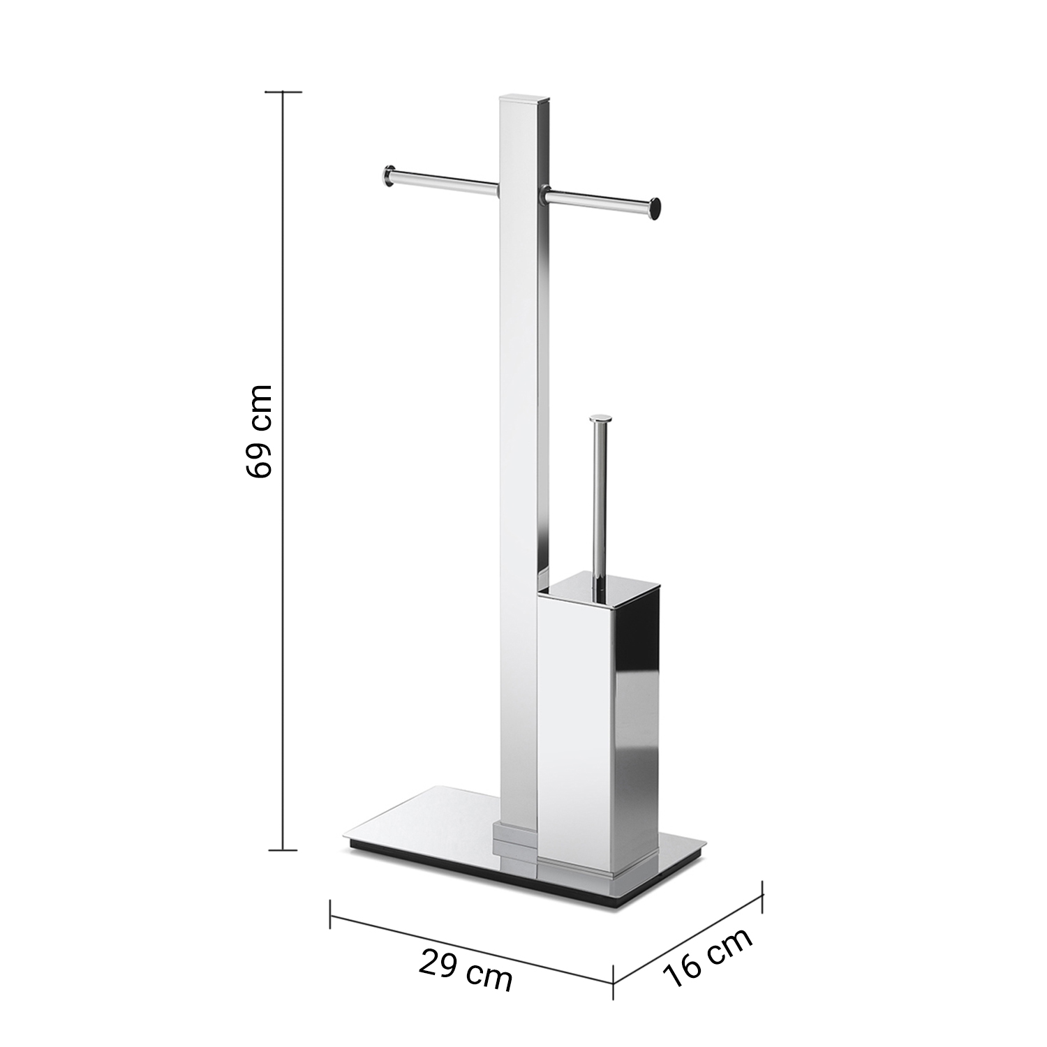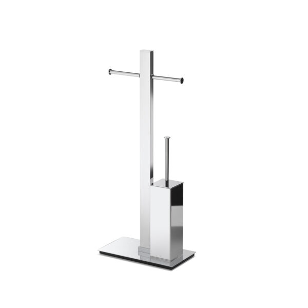 Piantana con portarotolo doppio e scopino con ciuffo in setole bianco e tazza interna estraibile idonea ad una facile pulizia