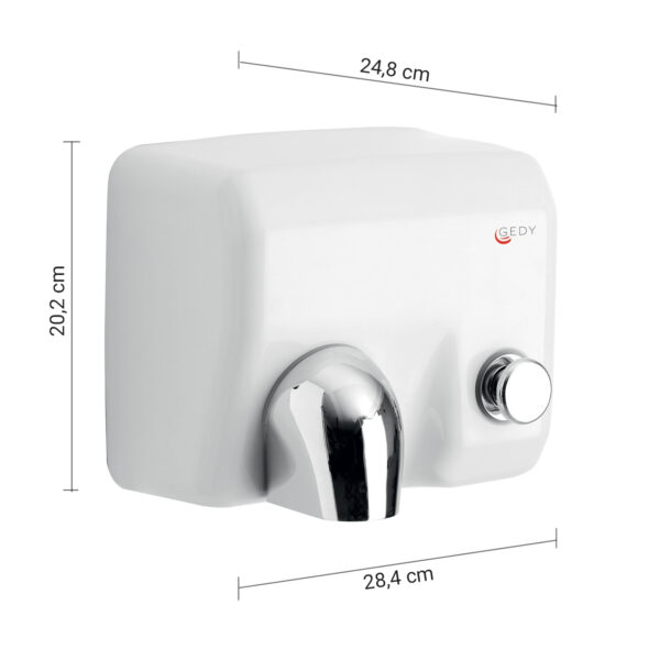 Asciugamani elettrico antivandalo ad aria calda con pulsante 2400w. classe ii – ip34 – 220-240 v – 50-60hz