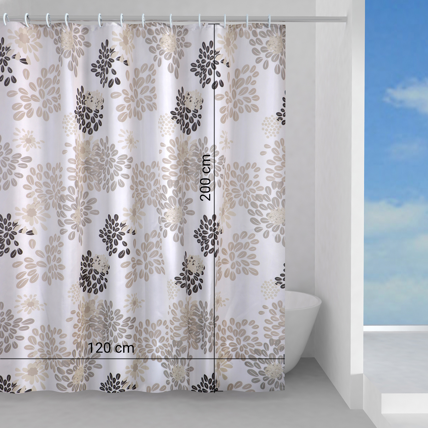 Tenda doccia in tessuto con anelli inclusi 120×200 cm