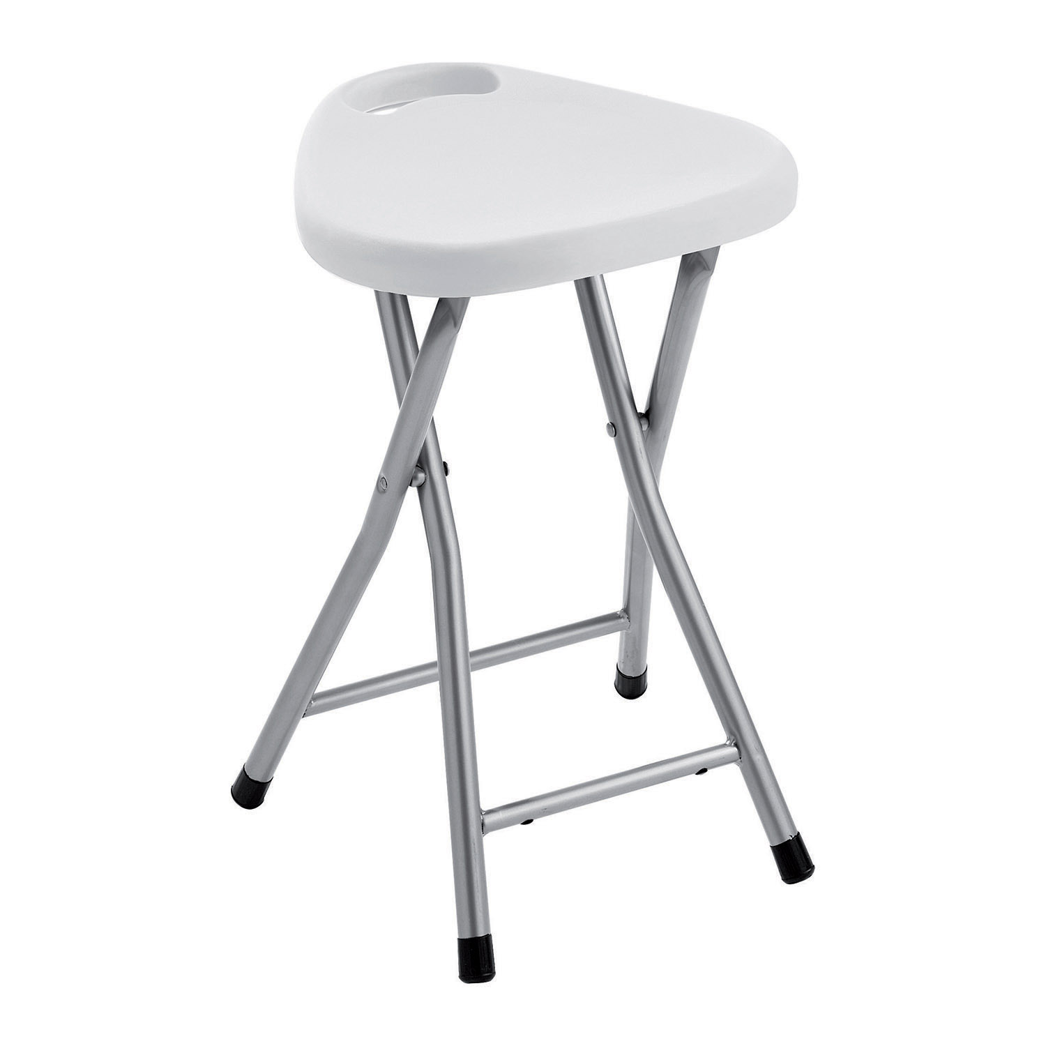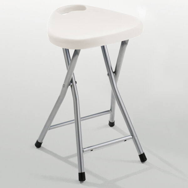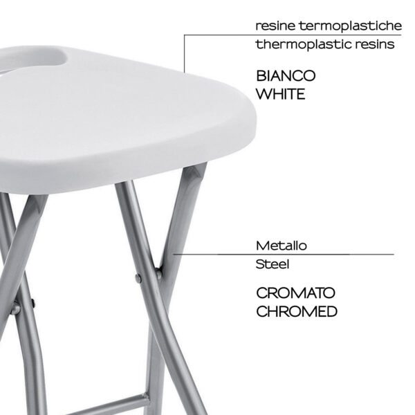 Sgabello richiudibile con chiusura di sicurezza, gambe lucide e seduta colorata in bianco, con carico testato 100 kg