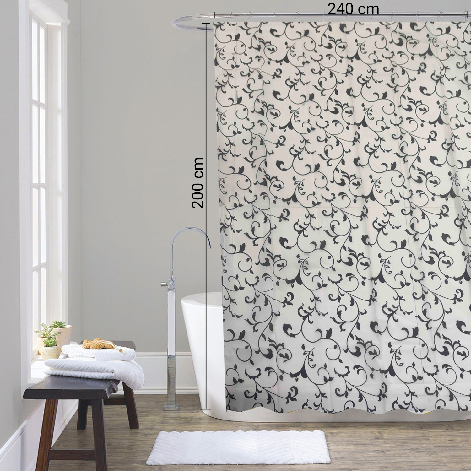 Corinzia tenda doccia in peva 240×200 cm bianco/nero