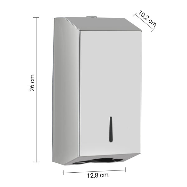 Distributore di salviette di carta igienica intercalata (max 10×12,5 cm) prodotto con serratura di sicurezza, max 350 fogli