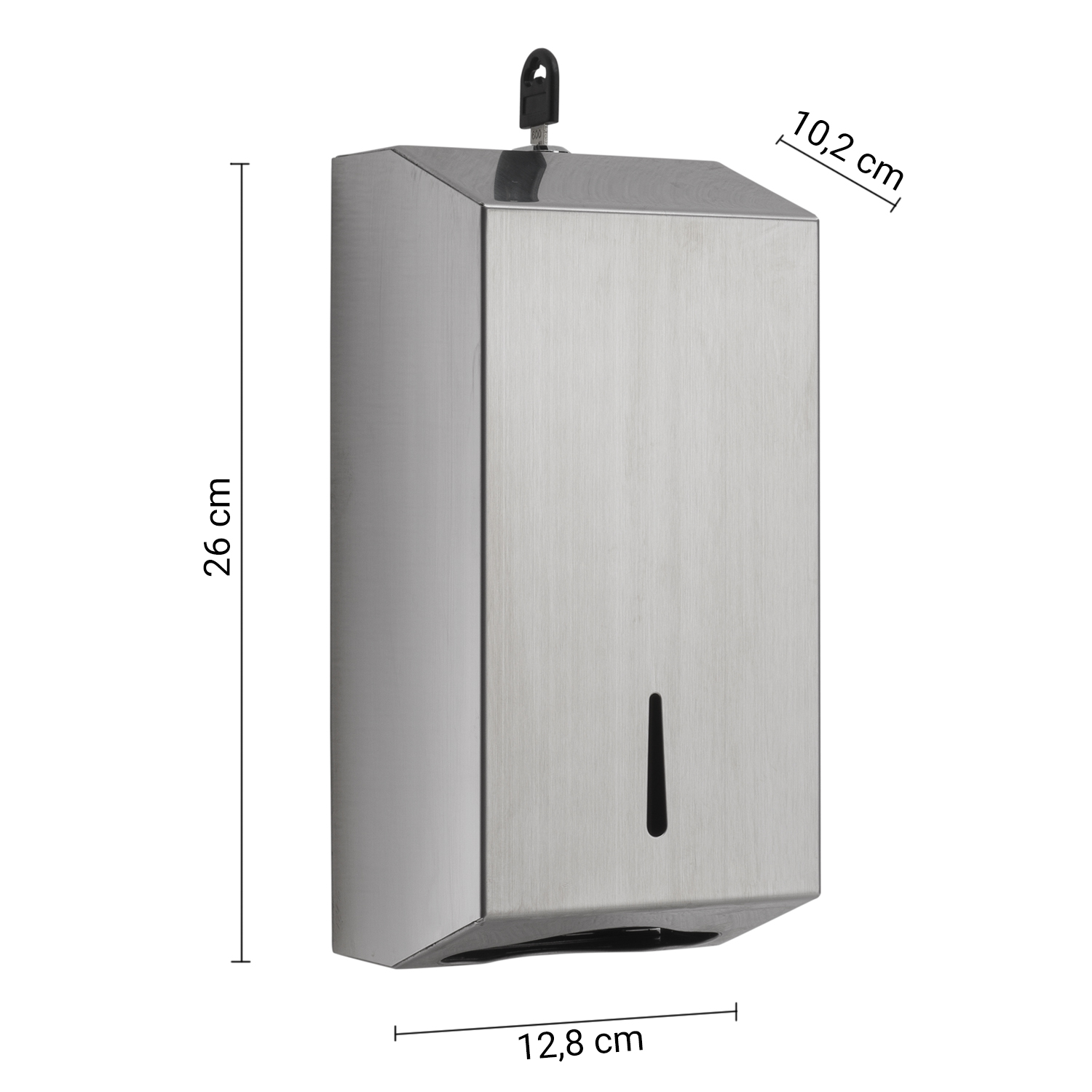 Distributore di salviette di carta igienica intercalata (max 10×12,5 cm) prodotto con serratura di sicurezza, max 350 fogli