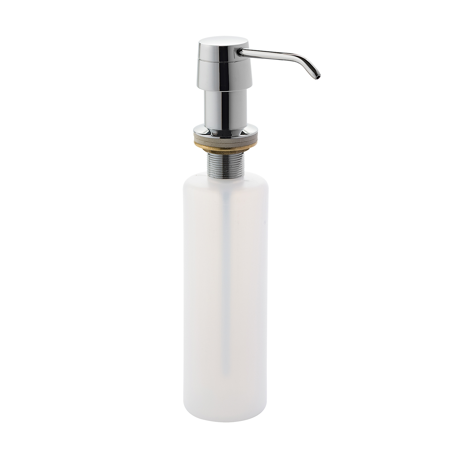 Distributore di sapone da incassso per top lavabo con erogatore in metallo cromato. capacita’ 340 ml