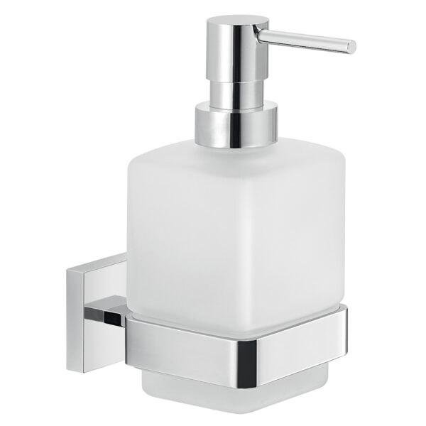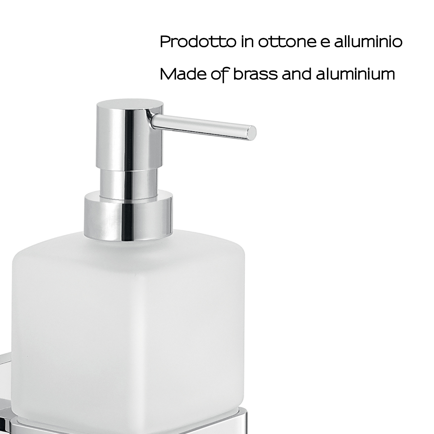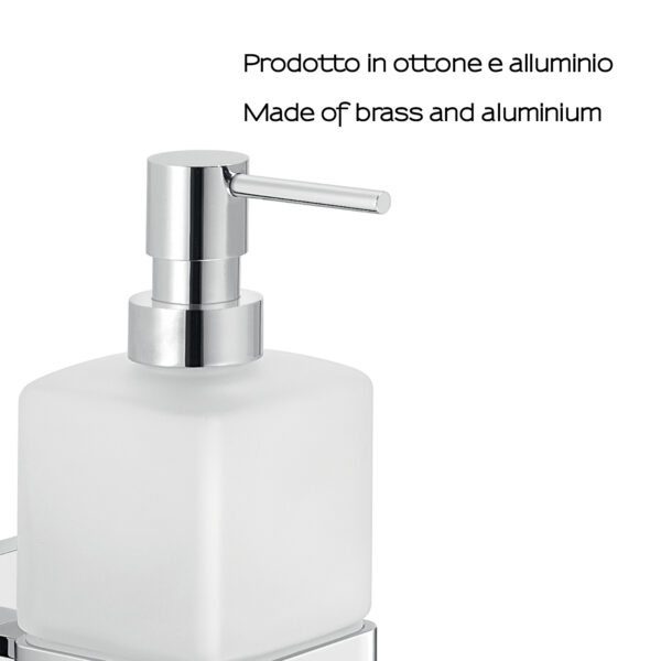 Dosasapone con contenitore in vetro satinato ed erogatore in ottone