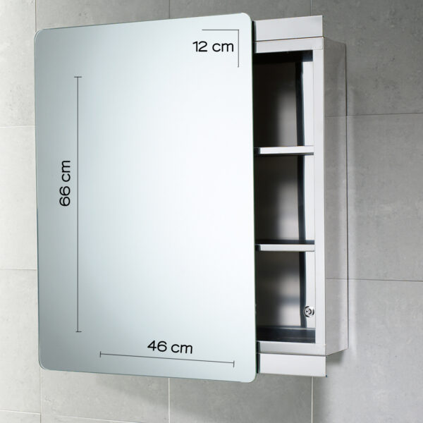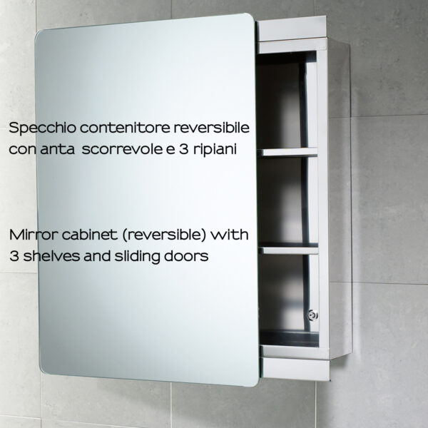 Specchio contenitore reversibile con anta scorrevole 46×66 cm e 3 ripiani