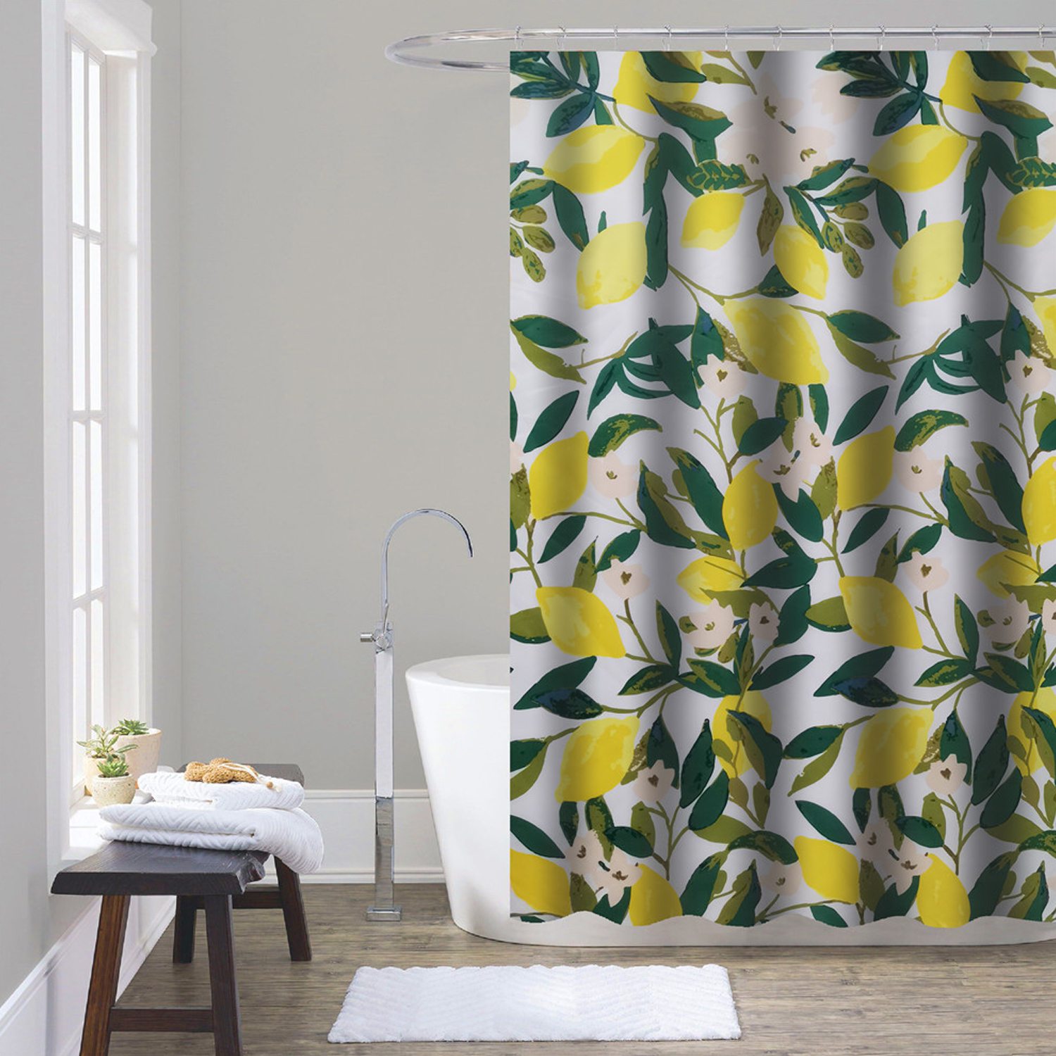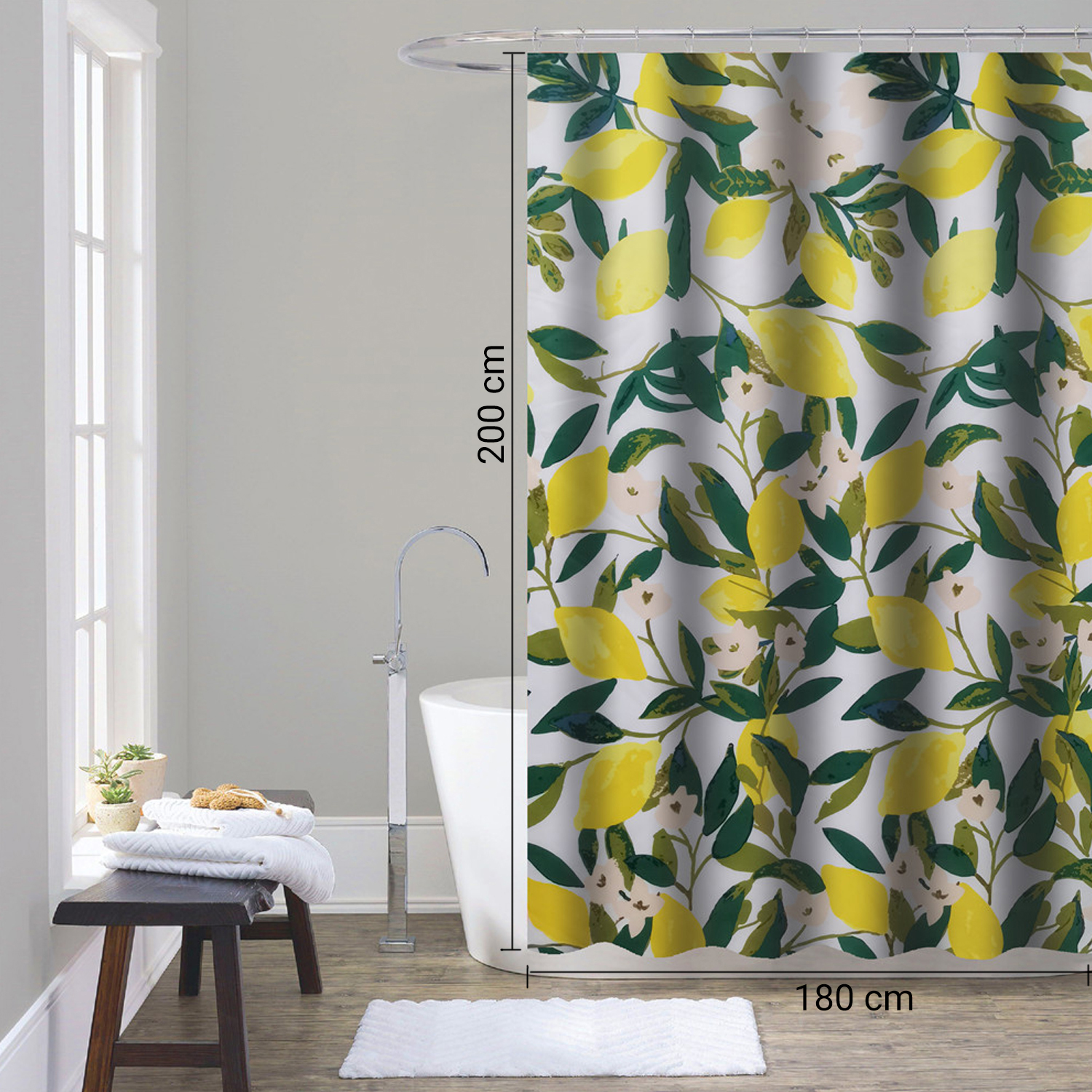Lemon tenda doccia in tessuto 180×200 cm bianco/giallo/verde