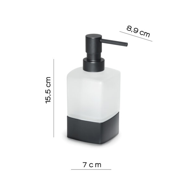 Dosasapone d’appoggio con contenitore in vetro satinato ed erogatore in ottone